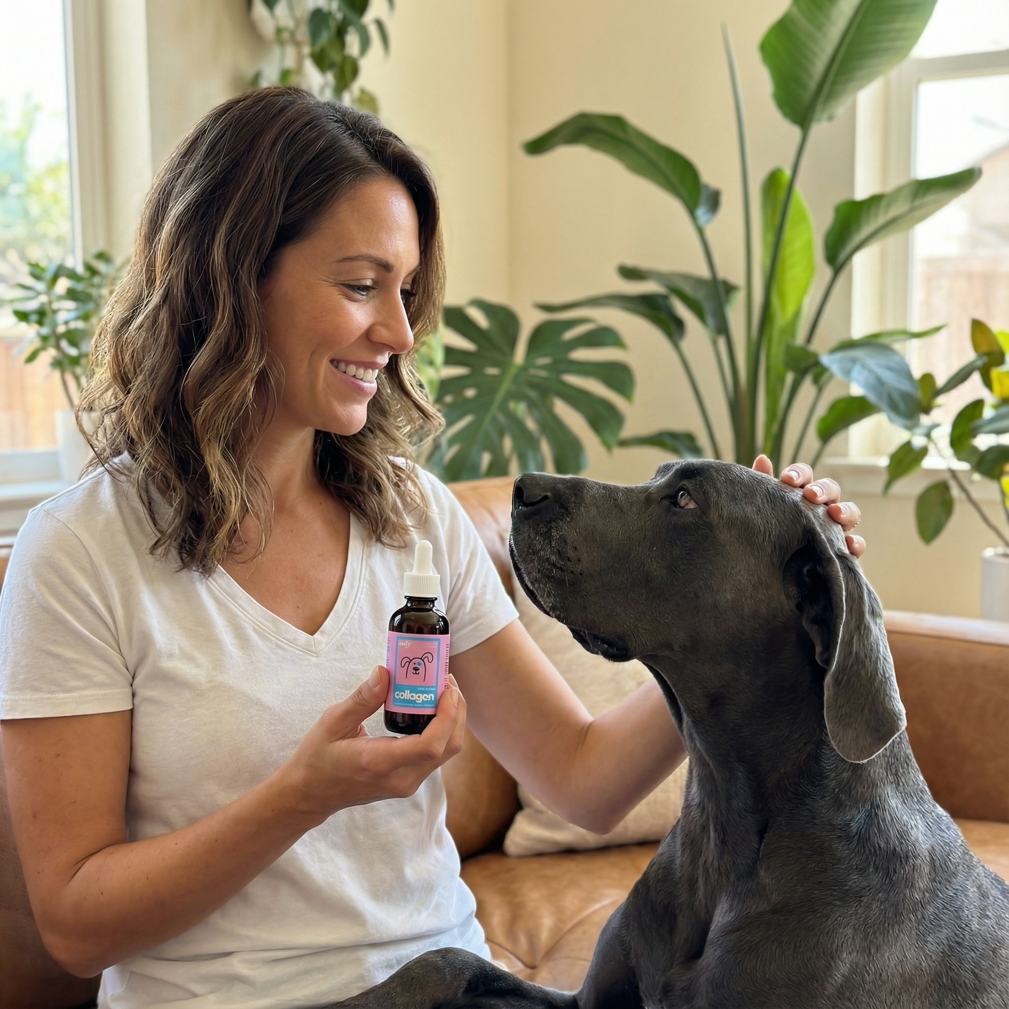 Découvrez la formule liquide au collagène que les propriétaires de Bergers, Labradors et Bouledogues utilisent pour retrouver leur loulou d'avant — souvent en moins de 3 semaines.
